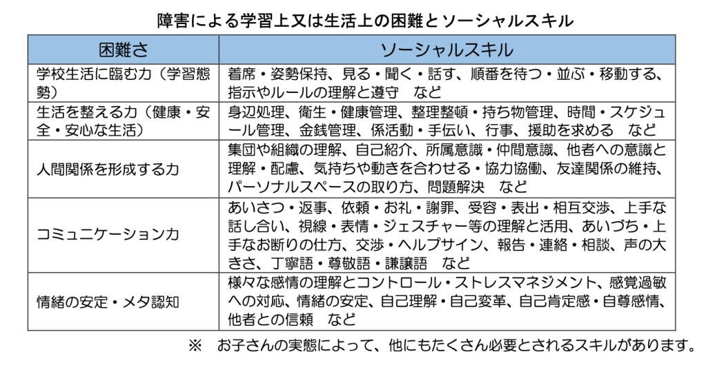 当支援室では、Social Skills Training(SST)を通して、お子様の健やかな成長発達を支援します。 ◆ SSTとは・・・ 人が社会で生きていくために必要とする、様々なスキルの習得を目指すトレーニングです。カリフォルニア大学ロサンゼルス校医学部精神科教授ロバート・ポール・リバーマン氏が考案した認知行動療法の一つです。 ◆ SSTを通して・・・ 子どもたち自身が「自己理解」を深め「自己支援力」を育むことを助け、「ぼくにはこんなところがあるけれど、こうすれば大丈夫」と思えるよう支援します。 そして、様々な“困難さ”はあっても「他者とよりよく関わっていきたい」という、子どもたちの思いに応えます。 ◆ 発達障害ゆえの“困難さ”・・・ 発達障害の子どもたちが抱える“困難さ”に着目し開発した教材をもとに、子どもたち自身が困難さを軽減し改善することをお手伝いします。 ①学校生活に臨む力の弱さ → 他者に注目する、視線を向ける、集中力を持続させる等、集団活動に参加するための力 ②生活を整えることの困難さ → 健康・安全・安心な生活、時間管理、持ち物管理、金銭管理等、自分の身の回りのことや日常生活に必要な事柄を、自分で管理し整える力 ③人間関係を形成することの困難さ → 具体的かつ適切な人との関わり方等、他者との関係を築き、維持していく力 ④コミュニケーションの苦手さ → 表情、ジェスチャー、アイコンタクト等、様々な情報を総合的に関連づけて処理し、受信や発信をする力 ⑤情緒を安定させることの困難さ → 様々な状況の中で、「喜怒哀楽」等の感情や、それに伴う行動をコントロールする力 ⑥メタ認知(自己を客観視する力)の弱さ → 問題や課題に直面した際に、課題解決に向けた方法や自分のあり方をモニターし、自己評価をしてコントロールする力